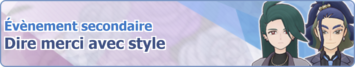 [modifier]Image de la bannière de l'Évènement secondaire : Dire merci avec style dans Pokémon Masters EX.