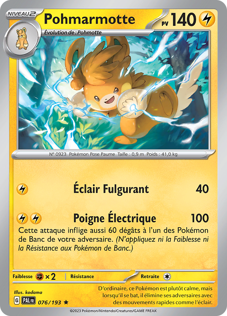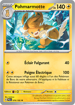 [modifier]Scan de la carte Pohmarmotte de l'extension Écarlate et Violet Évolutions à Paldea.