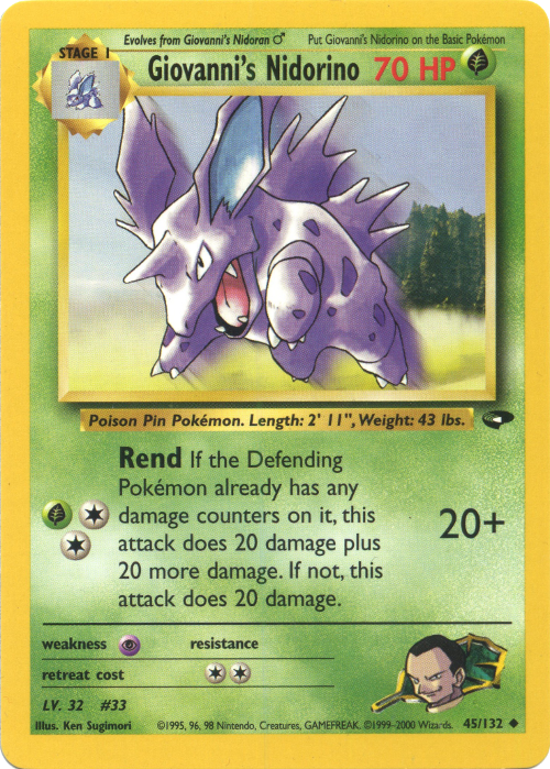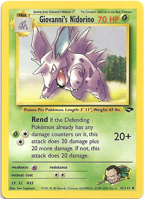 [modifier]Scan de la carte Giovanni's Nidorino de l'extension Gym Challenge.