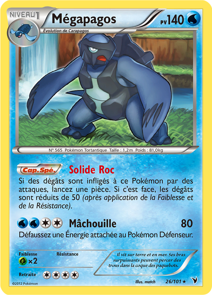 [modifier]Scan de la carte Mégapagos (Noir & Blanc Nobles Victoires 26) de l'extension Noir & Blanc Nobles Victoires.
