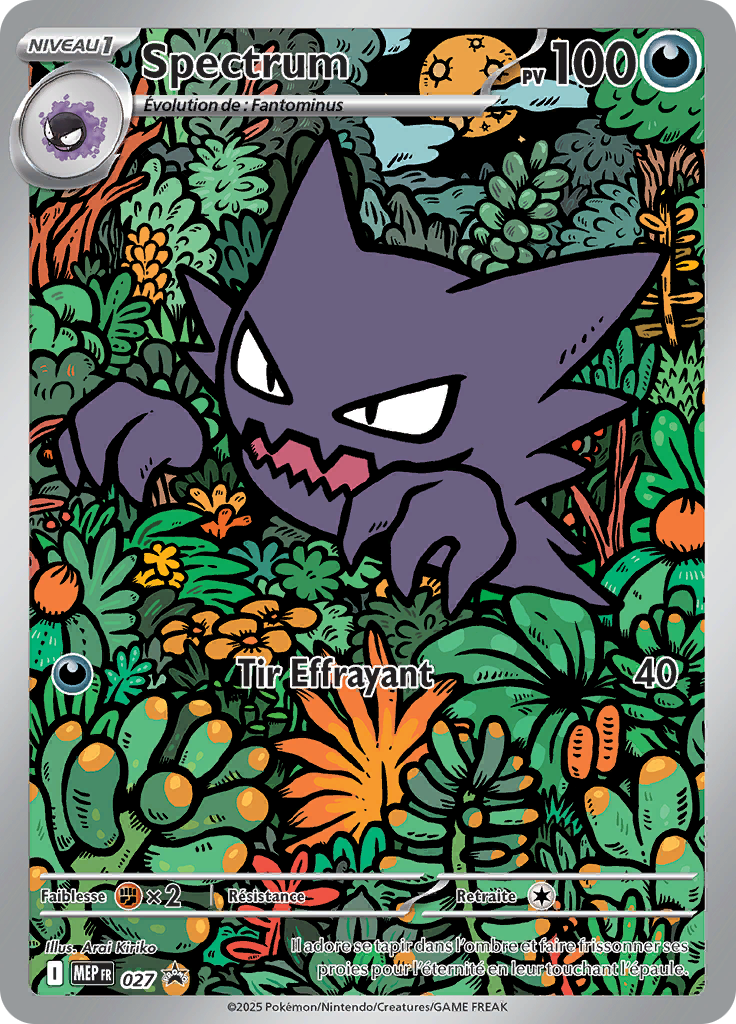| actuel | 14 novembre 2025 à 22:12 | 736 × 1 024 (421 kio) | Polomax2 (discussion | contributions) | == Description == Scan de la carte Spectrum de l'extension Promo ME. {{Informations Fichier | source=[https://limitlesstcg.com/cards/fr Limitless] | auteur=The Pokémon Company }} Catégorie:Scan de carte de Promo ME Catégorie:Scan de carte représentant Spectrum |