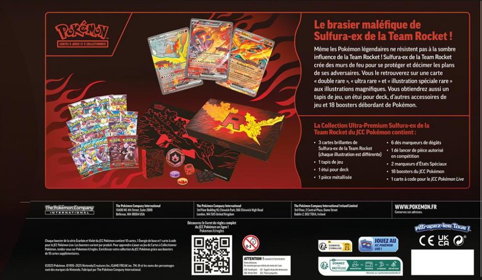 actuel19 décembre 2025 à 22:28Vignette pour la version du 19 décembre 2025 à 22:28994 × 577 (898 kio)Polomax2 (discussion | contributions)== Description == Verso de la Collection Ultra-Premium Sulfura{{Symbole JCC|ex Méga}} de la Team Rocket. {{Informations Fichier | Source = [https://www.ultrajeux.com/produit-31737-coffret-18-boosters-pokemon-collection-ultra-premium-upc-sulfura-ex-de-la-team-rocket-0196214129931.html UltraJeux] | Auteur = The Pokémon Company International }} [[Catégorie:Image de coffret JC...