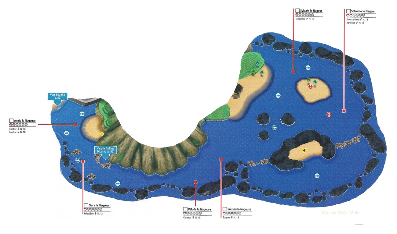 [modifier]Plan de la Mer de Mele-Mele dans Pokémon Soleil et Lune.