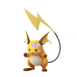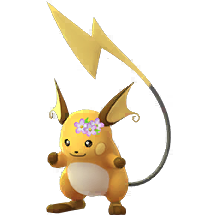 Version 1 du sprite de Raichu mâle portant une couronne de fleurs dans Pokémon GO.