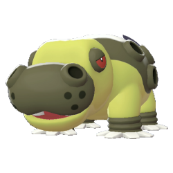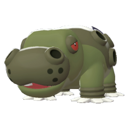 Le Pokémon Poids Lourd. Hippodocus peut générer de puissantes tornades en soufflant du sable par les différents orifices qu'il a sur le corps. Sa bouche mesure près de deux mètres de diamètre.