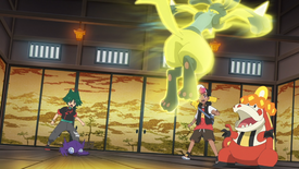 - Rhod et Uruto affrontent un Lucario chromatique, mais perdent le combat.