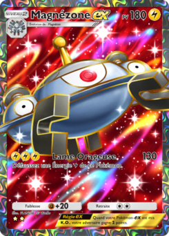 est une carte Pokémon-ex de l'extension Aura Palpitante, à l'effigie du Pokémon Magnézone. Elle doit être posée sur un Magnéton pour pouvoir être jouée.