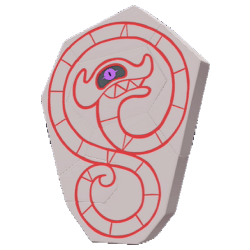 Lorsqu'il est chromatique, son corps tend vers le violet, les pierres qui le constituent sont blanches, son œil est vert et le dessin représentant un dragon est magenta.