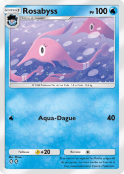 Rosabyss est une carte Pokémon de l'extension Aura Palpitante, à l'effigie du Pokémon Rosabyss. Elle doit être posée sur un Coquiperl pour pouvoir être jouée.