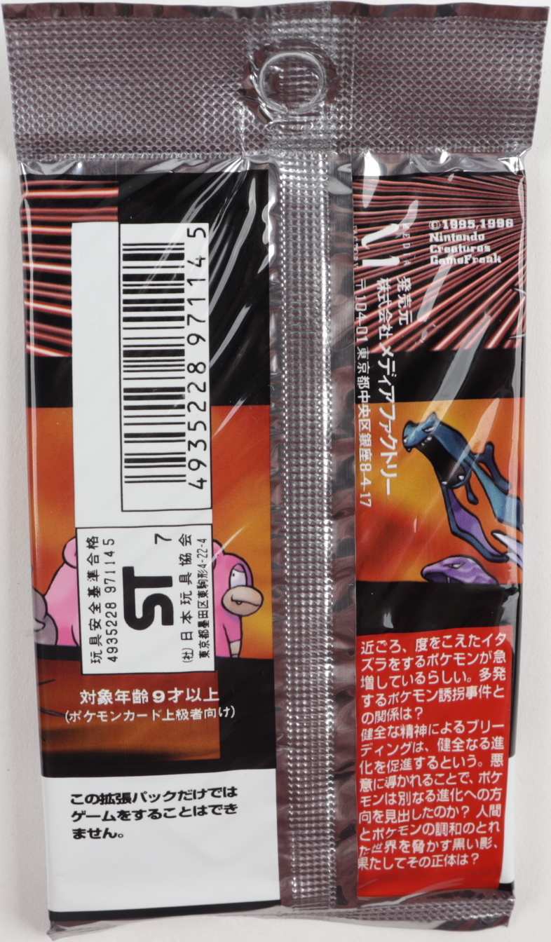 | 30 novembre 2025 à 23:49 | Booster ロケット団 Verso.png (fichier) | 1,75 Mio | Meylody (discussion | contributions) | == Description == Verso du booster de l'extension ロケット団. {{Informations Fichier | source=[https://www.pristineauction.com/a5006518-Pokemon-Japanese-Team-Rocket-Booster-Pack-with-10-Cards Pristine Auction] | auteur=The Pokémon Company }} Catégorie:Image de booster japonais du JCC Catégorie:Image de ロケット団 Catégorie:Image Pokémon représentant Flagadoss Catégorie:Image Pokémon représentant Nosferalto Catégorie:Image Pokémon représentant Grotadmorv | 1 | |